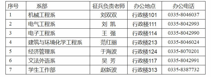 依照《中华人民共和国兵役法》、《征兵工作条例》、《河北省兵役登记实施办法》规定要求,我院2017年大学生兵役登记和应征入伍工作现已开始。为做好此项工作,请各系极组织、广泛发动适龄青年进行兵役登记和应征入伍工作,现就相关要求通知如下: