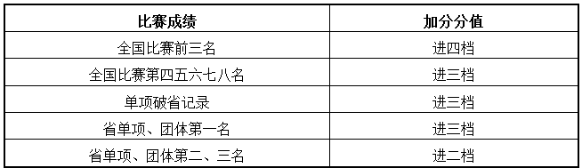 注:1、以获得的最高名次对照上表加分,获得多项名次时不累计加分。